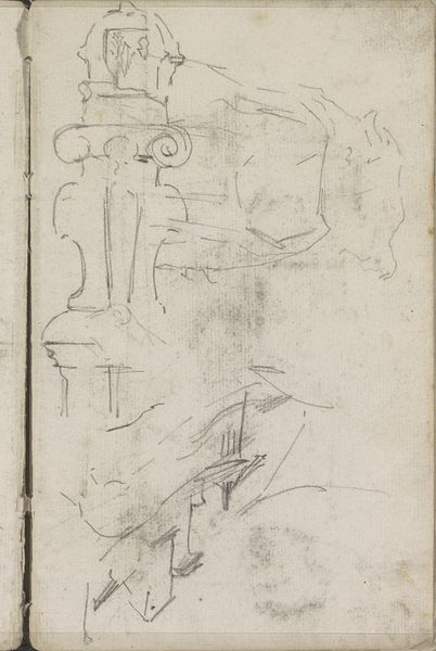 This is a page from a sketchbook by George Hendrik Breitner, currently held in the Rijksmuseum, that captures his exploratory approach to composition and form. The page is filled with a series of quick, light pencil sketches, layered on top of each other. The lines are tentative, searching, creating a sense of movement and energy. Breitner is clearly experimenting with different arrangements of shapes and figures, exploring the relationships between them on the page. Note the juxtaposition of architectural forms with figural studies. This combination destabilizes traditional distinctions between figure and ground. Breitner’s sketches invite us to consider the act of seeing itself. By presenting multiple perspectives and fragmented forms, he challenges our perception and encourages us to question fixed meanings. The unfinished nature of these studies reflects a broader artistic concern with the process of creation, rather than a finished product. The rawness and immediacy of these sketches anticipate later developments in modernist art, where the emphasis shifted from representation to the exploration of form and process.