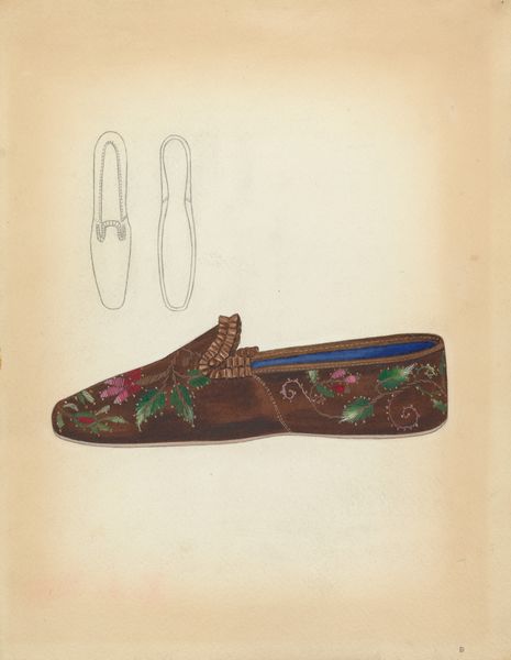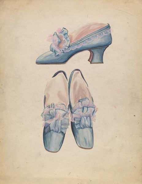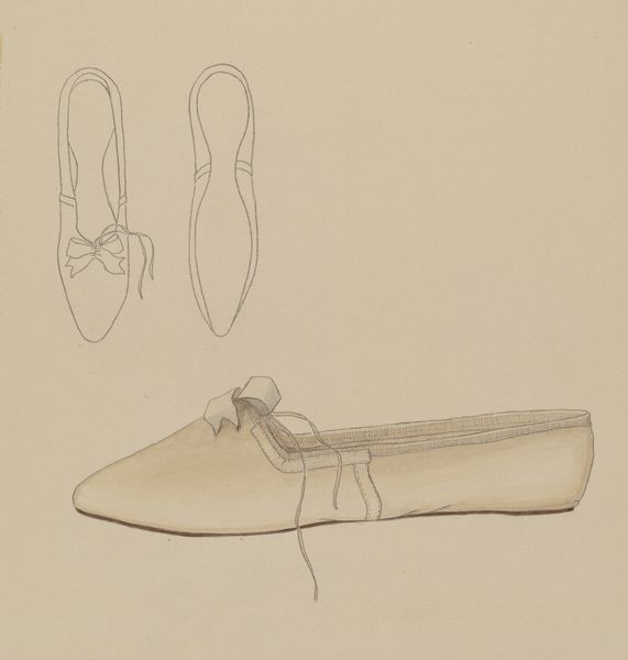 Melita Hofmann made this drawing of a slipper, likely with pencil and watercolor, sometime in the 20th century. I love how Hofmann lets us in on her process with the ghostly outlines of other shoe ideas floating above the finished one. The single slipper is rendered in a gorgeous, muted purple that feels both present and a little dreamlike. Look at how she layers the watercolor, creating subtle shifts in tone that give the slipper a soft, almost velvety texture. The long, trailing ribbons create a sense of movement, as if the slipper is about to be worn for a dance. It reminds me of Morandi's still lifes, simple objects imbued with a quiet, contemplative beauty. It’s like Hofmann is saying, even the most ordinary things can be a source of wonder if we really take the time to look.