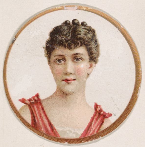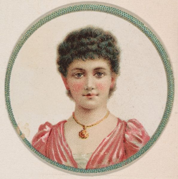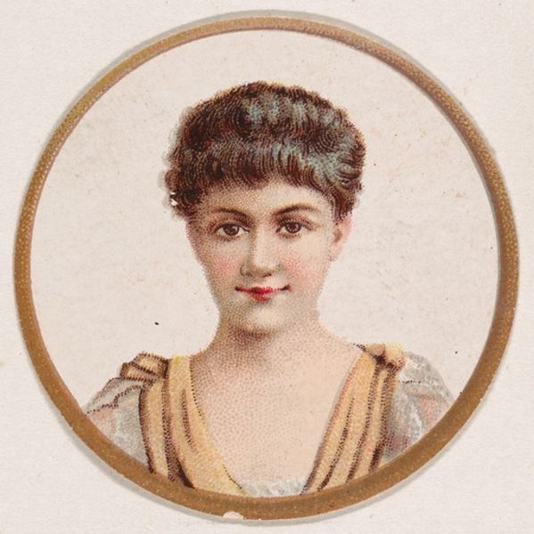 This small portrait of a woman, part of the Novelties series by Kinney Bros., captures a peculiar moment in the commodification of beauty. The young woman’s demure gaze and soft features are framed within a circle, a shape pregnant with symbolism—eternity, wholeness, and the cyclical nature of time. Circles appear in various forms across cultures, from halos in religious art signifying divinity, to the Ouroboros, the snake eating its tail, representing endless return. Here, however, the circle is rendered mundane, used merely to frame a face for mass consumption. Is this not a desecration of an ancient symbol? Yet, perhaps it is also a continuation, a reflection of how symbols are constantly re-appropriated, stripped of their original sacredness, and reborn in new, often secular, contexts. The psychological effect is unsettling. We are drawn in by the familiar, yet repelled by its commercialization. The image lingers, a testament to the enduring power—and mutability—of symbols across time.