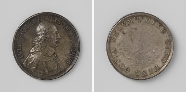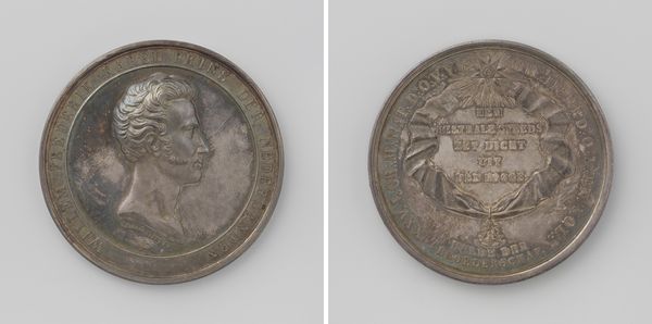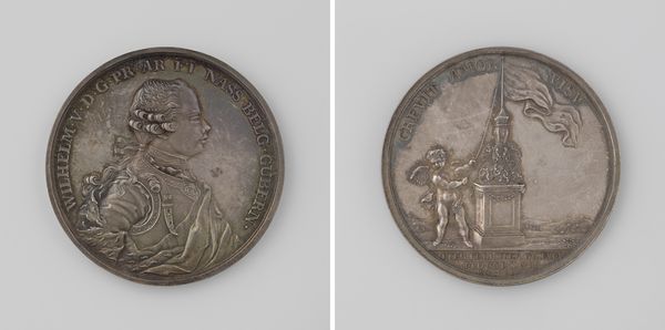 Curator: It's quite striking, isn't it? Jean-Pierre Droz created this medal in 1801 to commemorate the Peace of Lunéville. Editor: My first impression is one of stark propaganda. The cool metallic surface, the rigid profile – it feels like a deliberate attempt to cast Napoleon in a very specific light. Curator: Precisely. Crafted from metal, it functions not just as a symbolic object, but as currency in shaping public opinion. It highlights the shift towards Neoclassicism, a conscious attempt to connect Napoleon's image with the grandeur of the Roman emperors. Editor: The choice of metal, I think, is key. It’s a durable material, meant to last, but also one directly tied to industry and war, both of which shaped Bonaparte’s trajectory. Look how that connection to war impacts gender and class in that era. Curator: Indeed. And observe the symbolism on the reverse. There is a blazing sun and some sort of... a possible location marking where the peace of Luneville would've taken place. This side feels celebratory. Editor: Although a sunrise promises optimism, considering the circumstances surrounding the treaty, I would call this side more aspirational, even deceptive. Peace brokered on whose terms and at what cost? And who benefits materially? It feels essential to scrutinize whose narratives are elevated by such commemorative works. Curator: Of course. But by choosing Neoclassicism, Droz aims for something more lasting. And look closely; it feels smaller and more personal than, say, a grand history painting meant for a salon. This could have been something to carry. Editor: A tactile piece of propaganda – I'd imagine such a medal circulating among a certain echelon, solidifying their connection to power. It also serves as a constant reminder of that power’s visual and material presence. We mustn't underestimate its effects on maintaining structures of power and oppression. Curator: A very good point. Overall, it provides a valuable object lesson. By unpacking its materiality and message we get insight into the machinations behind its production. Editor: Absolutely. It is essential to unpack how these artifacts reflect and perpetuate broader social, political and economic conditions during periods of conflict and fabricated resolutions.