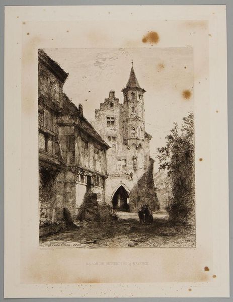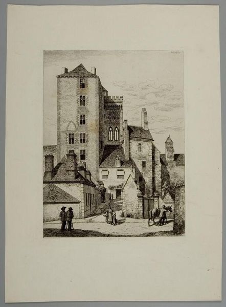 Editor: Here we have Bartolomeo Pinelli’s "Campanile of S. John and S. Paul." It gives off a real antiquated, almost lonely vibe, don’t you think? What do you see in this piece? Curator: Absolutely, there's a melancholic beauty. The etching technique gives it that feeling, like a memory fading at the edges. Notice how Pinelli positions the campanile, almost as a silent observer, burdened by time. It speaks of history, resilience, but also, perhaps, of loss, like a lone figure standing guard. It makes you wonder about the stories those stones could tell, doesn't it? Editor: It definitely does. I hadn't thought about it as a lonely observer, but that makes total sense. Thank you! Curator: My pleasure. Art is such a personal voyage, a mirror reflecting our own sentiments and experiences. This work invites us to ponder the passage of time and the quiet strength of enduring structures.