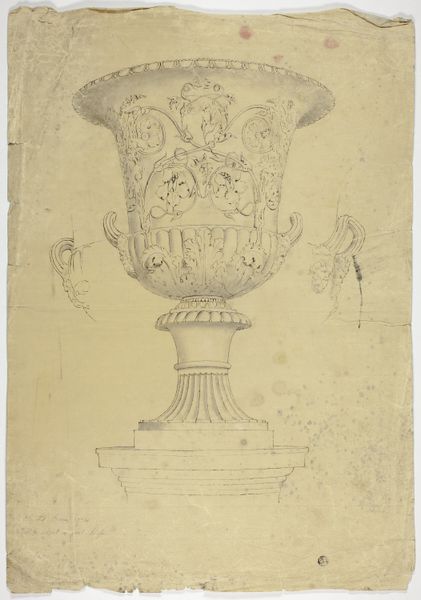 This is an anonymous design for an urn on a pedestal, rendered on paper in ink. The visual language of the piece draws heavily from classical antiquity, a period seen as a high point of civilization. The image employs motifs such as acanthus leaves and egg-and-dart patterns. Ancient Greece and Rome held significant cultural capital and were often evoked to lend authority and prestige. In many Western societies, including those of Europe and the United States, classical forms were used in architecture and design to convey ideals of democracy, reason, and order. Urns of this sort would not be out of place in the gardens of a grand estate. Understanding the use of these forms requires a grasp of the cultural and institutional forces at play. Art historians consult pattern books, architectural treatises, and social histories to reveal the meanings embedded in such designs. Only then can we fully appreciate the social and political values they were intended to communicate.
