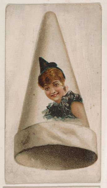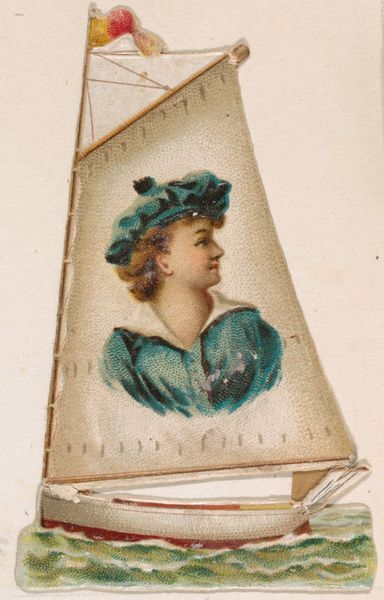 This chromolithograph of a bell, published by Kinney Bros., presents us with more than just a simple image. The bell, often associated with announcements and calls to attention, here frames a young woman, her gaze directed towards an unseen future. Consider the bell's shape: its echoing form appears in various contexts. The silhouette mirrors the sacred vessels found in religious rites across cultures. Think of chalices and ceremonial bowls; each holds a symbolic weight that transcends its material form. In this novelties series, the integration of the female portrait into the golden bell merges notions of purity and heralding. These symbols, like cultural echoes, reverberate through time, constantly re-emerging, their meanings subtly altered by each new context. What secrets and forgotten histories are embedded in these cultural transmissions? The image captures a moment, yet hints at the endless dance of symbols through the ages.