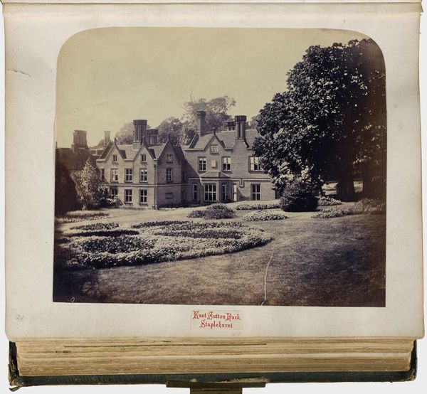 Editor: This photograph, "Untitled (Panshanger)" from 1858, shows a stately English home. It's an albumen print. The tones are beautiful, almost sepia-like. It feels both grand and a little bit desolate. What strikes you when you look at this piece? Curator: Well, immediately, I think about the industrialization of photography at this time. The albumen process, itself, speaks volumes. Think about the labor involved—preparing the glass plate, coating it with albumen derived from egg whites, sensitizing it, exposing it… Editor: So it's less about the mansion itself and more about...the physical process? Curator: Exactly! This image isn’t just about aristocratic England. It's about the rapidly evolving technological landscape and the changing means of production. This print shows a landscape, yes, but it is itself a product, almost a commodity. Editor: So, the beauty isn't just aesthetic, but also in understanding the labour that created it. Curator: Precisely. The availability and consumption of photographs like this transformed visual culture. Think about who was buying and displaying these images. It’s a new form of consumption linked directly to technological advancements. The print is beautiful because it represents social and technological progress. And we cannot underestimate that by focusing on materiality we include craftsmanship into what art might represent. Editor: That gives me a whole new appreciation for this photograph. It’s not just a pretty picture; it’s a record of a changing world. Curator: Exactly, by considering materials, means and access, it opens up the discussion.