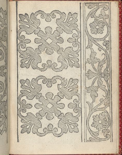 Editor: Here we have "Il Monte. Opera Nova di Recami, page 8 (recto)" created sometime between 1557 and 1570. It's a print, an engraving to be exact, by Giovanni Antonio Bindoni. I’m struck by the intricate linework. It feels both decorative and somehow quite precise. What do you see in this piece? Curator: The meticulousness with which this image has been produced speaks volumes. Let's consider the labor involved in creating the original design and then transferring it to a printing plate. The repetitive nature of ornamental prints highlights the increasing mechanization influencing artistic production at this time, making these designs widely available. How might its purpose as an instructional manual shape your understanding? Editor: An instructional manual! I hadn't considered the ‘how-to’ aspect of it. Knowing that it was a guide for embroidery impacts my understanding; the choice of the material would've been decided before. How might the constraints of embroidery materials have influenced Bindoni's design choices, or vice versa? Curator: Precisely! The limitations, but also the potential, of thread and fabric directly impact the visual language here. Note the bold, clean lines – essential for clarity when translated into stitched form. And it shows how 'low' art is elevated by high art techniques. The print serves a practical function and challenges these hierarchies in the art world. What’s your take on its modern context, viewed as art today? Editor: I guess it shows that art is as much about function and use as about pure aesthetics. By looking at its original material purpose, it offers a new way of looking at these printed images and expands art, rather than just defining it. Curator: Exactly! The beauty lies not only in the image but in the labor, production, and the democratization of art making it made possible.