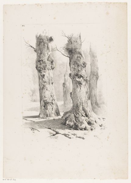 Editor: This is "Vine," an etching and engraving print by Gianni Cacciarini from 1973. I am struck by how the starkness of the lines somehow gives the old vine a delicate fragility. What do you make of it? Curator: Ah, yes, Cacciarini. I think what strikes me most is how he uses line to convey not just form, but also texture and light. Look how the cross-hatching gives depth to the trunk, creating a sense of its weathered history. It’s as if he's imbuing the vine with a memory, a lived experience etched—quite literally—into its very being. Doesn't it make you think about the lives these plants lead? Rooted, yet reaching, scarred, yet still bearing fruit? Editor: It does! I guess I hadn't considered the "lived experience" aspect. The way the lines capture light and shadow hadn’t occurred to me. Do you think the artist meant for it to be viewed as an individual portrait or as part of a larger landscape? Curator: Well, that's the magic, isn't it? It exists somewhere in between. It’s a landscape compressed into a single, gnarly being. This isolated portrayal invites us to consider it outside of context. And that’s where the universality creeps in. It’s about resilience, endurance, maybe even a bit of defiance against the odds. Editor: I see that now. It’s like a quiet rebellion, a life clinging on, even after all this time. Thank you, that was very insightful. Curator: My pleasure. It's in these quiet observations, these lingering gazes, that art whispers its secrets. Never underestimate the power of a single line.