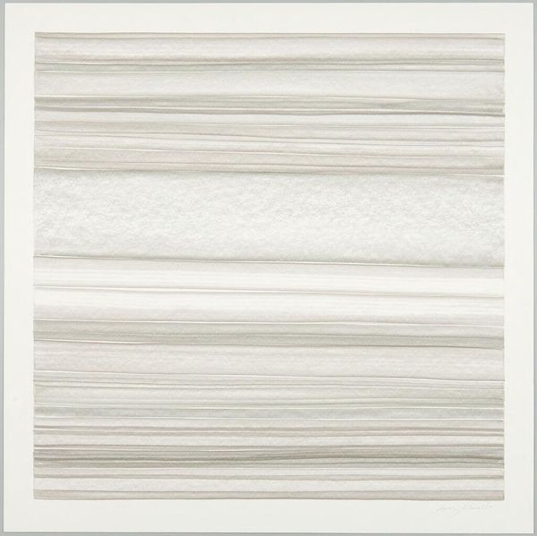 Curator: Take a moment to regard "Twisted Strings 100 x 126," a compelling piece crafted by Walter Leblanc in 1980. What's your initial take on it? Editor: My immediate impression is one of serene complexity. The off-white palette creates a calm, almost meditative atmosphere, yet the intricate lines promise an optical dance, hinting at movement beneath the surface. Curator: Precisely. Leblanc's meticulous approach to materials becomes central to this sensation. Can you sense the deliberate layering? Editor: Definitely. I am fascinated by the textural interplay achieved solely through line and orientation. The artist coaxes dimensionality out of essentially flat materials through a repetitive mark. Curator: Yes, and Leblanc was deeply engaged in the process of creation, investigating industrial production techniques and accessible material culture as equal to traditional art practice. He elevated materials available to everyone and, in turn, invited more individuals into conversations about art and what it means to create. Editor: It's interesting that you speak of access, because I wonder if it subverts the visual accessibility—it's almost dizzying in its patterned repetition. Curator: Do you see that dizziness as exclusionary or perhaps a way of suggesting instability and a playful tension to challenge conventional perceptions? It questions traditional hierarchies of making, too. Editor: Perhaps a bit of both, creating a kind of push and pull in both material reality and subjective response. The title itself, "Twisted Strings," hints at deconstruction. Leblanc seems eager to challenge traditional assumptions and expectations about where art is found. Curator: I think you're spot on. The labor behind each string is immense but gives rise to a final viewing experience where it appears nearly automated. That itself introduces questions regarding what happens to creative work and skill during widespread industrialization. Editor: I find the subtle variations in the off-white color equally thought-provoking, how each of those variations emphasizes different properties of line and texture. It’s simple, but impactful in suggesting motion within a grid. Curator: And for me, it suggests subtle ways of resisting uniformity. Looking at Leblanc's work gives us room to contemplate the possibilities present when creation stems from reevaluation of accessible materials. Editor: Yes, exactly. The intersection between deliberate technique and subtle perceptual variance…a space well worth revisiting again and again.