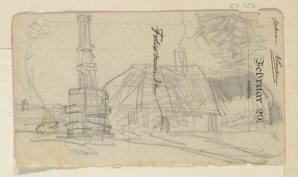 Editor: So, here we have "Dorpshuizen met een bruggetje" – Village Houses with a little bridge – a pencil drawing by Theo Nieuwenhuis, created sometime between 1876 and 1951. It's currently held in the Rijksmuseum. What strikes me immediately is the raw, almost unfinished feel of it. It's like peeking into the artist's private sketchbook. What do you see in this piece, that maybe I’m missing? Curator: Ah, yes! I see a fleeting moment, a whisper of a place. It's as though Nieuwenhuis wasn't aiming for perfection but for a capture of feeling. See how the grid beneath shows through, hinting at the practicalities of an artist at work, almost like revealing the bones beneath the skin. What do you feel when you look at it? A memory, perhaps? Editor: Definitely a memory. It reminds me of childhood vacations, sketching by the canals. So, it is personal then? The imperfection is the point? Curator: I'd argue yes. It isn’t about photorealistic depiction. It's about capturing a sense of place and maybe the inherent quiet, rustic charm Nieuwenhuis saw in this particular village. Think about it – those loosely drawn lines, the subtle shading… they evoke a gentle breeze, the slow pace of life, wouldn’t you agree? What details specifically stick out for you? Editor: I love the sketchy bridge, and the hint of the houses reflecting in the water…it does feel incredibly peaceful. Curator: Exactly. The bridge links, not just the land, but us to the artist's memory. That's the magic, isn’t it? Editor: It is! I think I understand now. It's not about the skill but capturing that personal connection. Curator: Precisely. And perhaps, inspiring us to sketch our own memories. A worthy skill.