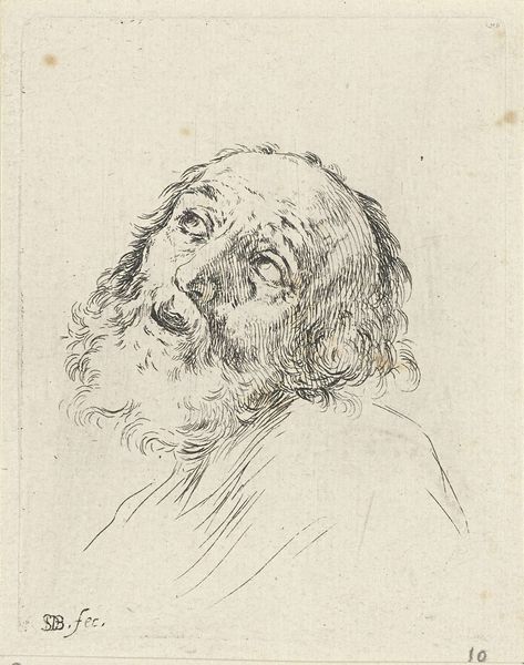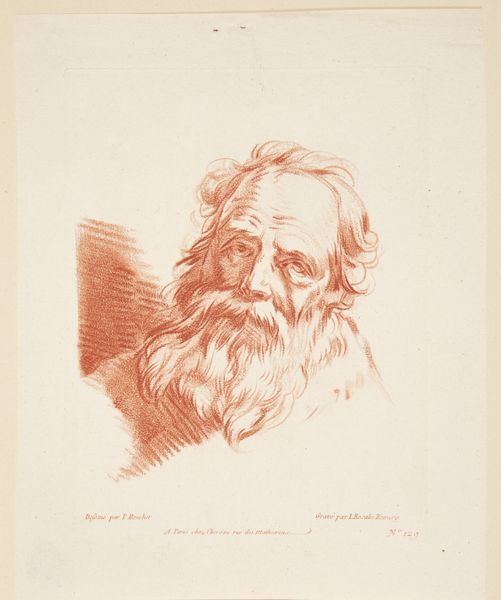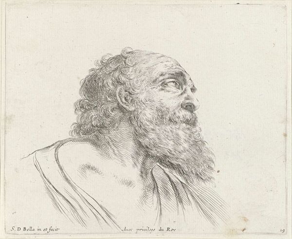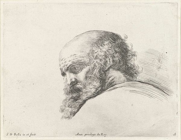 Curator: Here we have "Manshoofd, naar rechts", or "Head of a Man, facing right", created in 1766 by Hendrik Nieuwenhuysen. It's a rather captivating drawing done in pencil and engraving, currently residing here at the Rijksmuseum. Editor: Striking. He seems so solemn, so weathered. The shading gives his face a beautiful depth. Curator: Nieuwenhuysen was working within the broader Baroque portrait tradition. Artists often sought to convey not just likeness, but also character, social standing, and even moral virtues through their subjects’ depictions. Editor: I wonder what this man did to accumulate all those lines! He must have seen quite a bit in his time. This work feels less like a formal portrait and more like a sketch ripped from someone's sketchbook. There is an element of observation, an intimate look. Curator: Precisely. These kinds of drawings circulated widely and played an important role in disseminating knowledge, influencing taste, and shaping social perceptions. He likely sought to master both the technical skill of drawing and also how to create relatable, even idealized figures. Editor: You're right, even though there are so many details, look at his hair or beard for example, the overall effect is simplicity, and something eternal, unadorned by transient fashions or momentary affectations. This person is just captured there. Curator: Yes! The artwork's success, in a sense, lies in its capacity to engage us, to stir empathy, perhaps even compel us to reflect on our humanity through the simple viewing of it. Editor: And perhaps remind us that true beauty often lies in the honest representation, not in grandiosity, but in simple direct observation, a fleeting glimpse into a character frozen by ink forever. Curator: An astute observation.