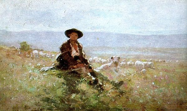 Curator: Jean-François Millet’s “The Young Shepherdess,” painted in 1873, offers us a glimpse into rural life. Editor: It’s striking. The somber palette almost mutes the scene, lending a gravity to what might otherwise be a simple pastoral subject. Curator: Millet aimed for that gravity, I think. As part of the Realist movement, he wanted to depict the everyday lives of the working class without idealization, a shift from Romanticized depictions of peasantry. He gained recognition by painting rural scenes like this, drawing attention to those largely forgotten. Editor: But even in its realism, there’s still a constructed narrative. Look at how the young woman is positioned, almost monumental against the landscape. She embodies labor but also resilience and a certain quiet dignity, even. How aware was Millet of the socio-political weight he was placing on these figures? Curator: Certainly, the Barbizon school, and Millet in particular, became quite politically charged. They were actively seeking an honest portrayal of rural life in France. He submitted to, and achieved success, in exhibiting at the Salon—he was entering these works into very public debates on labor and the French countryside. Editor: I’m intrigued by her interaction with the lamb. It speaks to ideas of vulnerability and care, especially considering the historical context of child labor and the burdens placed on young women in these agricultural settings. Is this, in some ways, also about the precarity of youth? Curator: Absolutely. Consider how paintings were disseminated through engravings and prints. Images like this permeated visual culture. What’s interesting is the public’s evolving reaction – a simultaneous recognition of hardship, coupled with, at times, a sentimental romanticism for rural simplicity. This juxtaposition underscores how artistic depictions shape collective consciousness. Editor: So we're left grappling with the intersections of realism and representation. I find it compelling how Millet's work opens dialogues on visibility, labor, and even the romanticized notions we project onto the rural working class. Curator: Indeed, considering this canvas within its historical milieu and through modern lenses can reveal much about evolving social perspectives and the enduring power of art to provoke introspection.