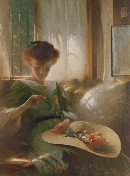 Haddon Hubbard Sundblom painted "How Little She Really Understands Herself," of indeterminate date, using oil on canvas. The composition centers on a young girl in a private moment, softly lit against a dark background, which creates an intimate viewing experience. Sundblom’s use of light and shadow, the soft, diffused lighting, accentuates the texture of the girl's skin, her dress, and the pages of her diary. This is contrasted by a concentrated focus on her facial expression, inviting questions about the nature of self-awareness and representation. Structurally, the painting suggests a tension between interior thoughts and external appearance, underscored by the visible diary, a literary device which became popular in the late 19th and early 20th century. Sundblom highlights the themes of adolescence and identity. The girl's thoughtful posture is emphasized, but the truth is that there are as many subjective "truths" as there are people to perceive them. Her pensive posture, framed within the intimate setting of her room, raises broader questions about privacy, perception, and the construction of the self. Ultimately, this painting functions as an artifact of cultural codes, illustrating that art is not just an aesthetic object, but a space where identity, representation, and subjective experience intersect.