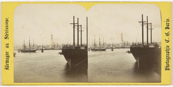 Here is the text for your audio guide: Ernest Eléonor Pierre Lamy captured this evocative image of ships at anchor in Naples, employing photography's nascent ability to freeze a moment in time. The ships, with their tall masts reaching skyward, stand as symbols of exploration, commerce, and the enduring human desire to traverse the seas. The image recalls earlier artistic traditions, where ships often represented the journey of life, the soul's passage, or even the church navigating the seas of the world. Consider the "Ship of Fools," a motif popularized in the late Middle Ages, which satirized the folly and moral decay of society, presenting humanity adrift without guidance. These vessels bobbing gently in the harbor evoke a sense of both anticipation and rest, mirroring the complex emotions tied to travel. The collective memory of maritime adventures, both triumphant and tragic, permeates this image, engaging viewers on a subconscious level and highlighting the cyclical nature of human experience and the symbols that persist through time.