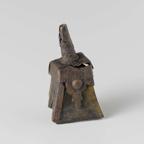 Curator: Here we have an Enkelschijfsblok, a single-sheave block carved from wood, dating back to somewhere between 1590 and 1596. It resides in the collection of the Rijksmuseum. Editor: It's wonderfully tactile! The light catches the wood grain and really highlights its, shall we say, plump, rounded form. There's a real sense of… solidity to it. Curator: Indeed. Let's consider this piece within its historical context. Single-sheave blocks like this were crucial components of sailing ships during the late 16th century. It represents a vital technology of maritime trade and exploration. The anonymous artisan who crafted this wasn’t just making an object, but contributing to a vast, globally connected system. Editor: But look at the carving itself. The smoothness, the way the channels are so carefully shaped. You see how that center piece is both functional and creates a point of visual interest? It's beautifully balanced. Almost sculptural, really. The circular form gives a soothing, balanced harmony. Curator: I’m more interested in the material reality. Wood as a readily available, relatively inexpensive material, transformed by human labor into a tool of empire. The very grain echoes the flow of resources during the Dutch Golden Age, speaking volumes about power structures. Editor: Yes, but consider the aesthetic choice inherent in simplifying the block to this pure shape! It transcends mere function; it's a beautiful object. See how that dark patine adds character? Curator: Character born from its labor! From the rope burn and countless voyages that marked its usefulness. I wouldn’t separate its beauty from that history of production and application, it is inseparable. Editor: It seems our discussion shows there are myriad levels on which this object is important. Curator: Certainly a great representation of utility meets the human hand during the late medieval era.