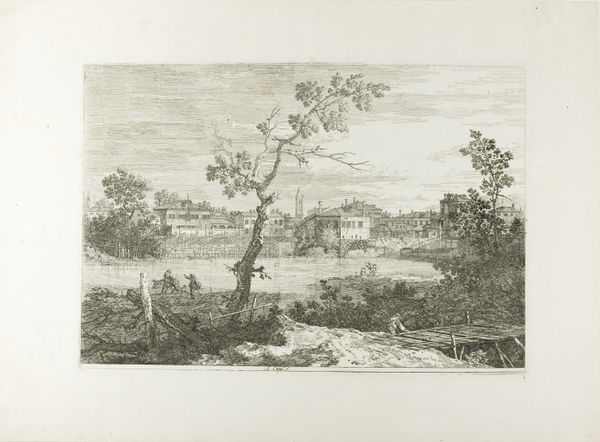 This is an etching of a landscape with a large tree and a hunter, created by François Collignon in the 17th century. The dominant visual element is the large tree, which stands as a powerful symbol of nature's enduring presence. Consider the tree's ancient roots as a motif extending back to the Tree of Life in ancient Mesopotamian art, symbolizing immortality and knowledge. This symbol recurs in many guises throughout the medieval period, such as illustrations in illuminated manuscripts. Trees have been associated with different deities in ancient pagan religions. The figure of the hunter, armed and in pursuit, evokes a primal struggle for survival, an age-old theme reflected in Paleolithic cave paintings. This motif has evolved over time, resurfacing in classical mythology with figures such as Artemis, the Greek goddess of the hunt, and continues to hold cultural significance in many cultures worldwide. This image reminds us of the cyclical patterns of history.