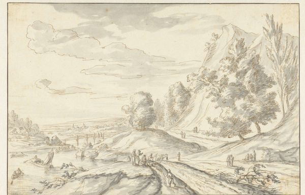 Rembrandt van Rijn made this landscape drawing with pen and brown ink in the Netherlands. He was interested in the natural world but even more so in the drama of human activity. This landscape looks like a real place but it is a construction. The monumental rock face, for example, is not typically Dutch. Instead, it is an imaginary amalgamation of observed and remembered details. The image also contains social realities. The bridge signifies trade and travel, while figures dotted throughout the scene represent everyday life. Dutch art of this time was closely tied to the Protestant faith and the rise of a wealthy merchant class. Artists catered to the tastes of this new audience, creating accessible images of everyday life. We can look to period maps and travelogues, merchant records, and religious tracts to understand the social conditions that shaped Rembrandt’s artistic production. By doing this we can better appreciate the public role of his art.