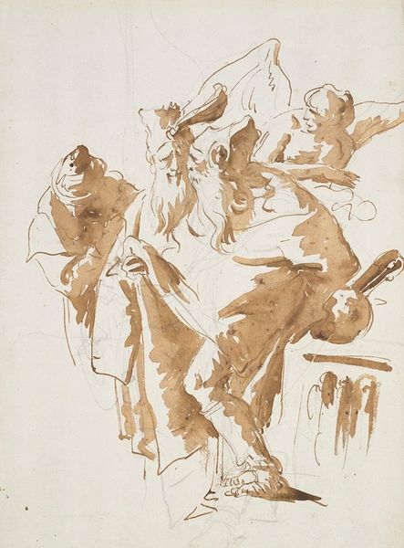 Giovanni Battista Tiepolo made this dynamic pen and wash drawing of a Winged Female Figure, River God, and a Nude Boy. Tiepolo was one of the most celebrated Venetian painters of the eighteenth century, a master of luminous color and theatrical composition. His workshop produced frescoes and paintings for churches and aristocratic patrons all over Europe, including commissions for the Prince-Bishop’s Palace in Würzburg, Germany, and the Royal Palace of Madrid. But these great machines depended on careful preparatory drawings like this one. Here, Tiepolo demonstrates his mastery of classical allegory. Winged figures, river gods and putti populate his mythological world. Consider how these images were deployed to reinforce the prestige of noble families or rulers across Europe. To fully appreciate the achievement of Tiepolo, we need to research the European aristocratic and ecclesiastic institutions. The history of taste is also relevant, as is the social function of art in eighteenth-century Europe.