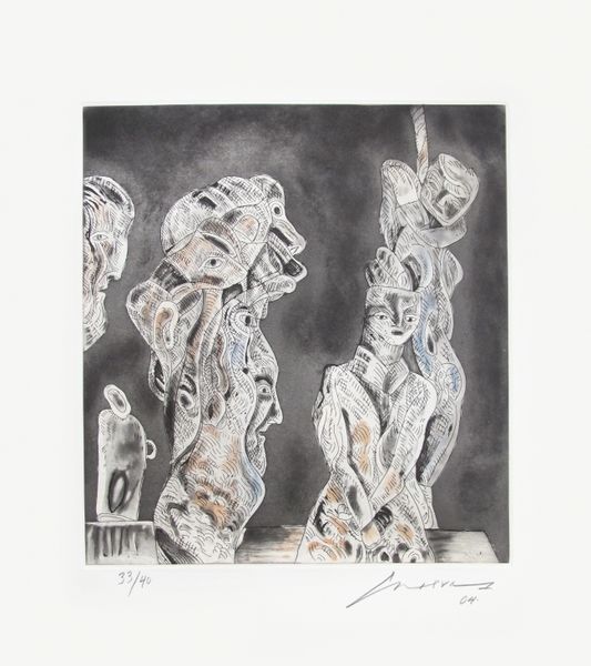 This untitled artwork was created using ink by Vasile Kazar, a Romanian artist, who lived through both World Wars and the rise and fall of Soviet influence in Eastern Europe. Kazar’s life experience deeply shaped his artistic vision. The ink sketches capture fragmented moments of figures and forms, offering a glimpse into the artist's subconscious world. Born in a period marked by political instability, his art reflects a sense of searching for meaning amidst chaos. The monochrome ink drawings evoke a feeling of loss and melancholy. The piece develops alternative narratives in contrast to traditional idealized representations. Instead it embraces abstraction. Kazar's art becomes a mirror reflecting the complexities of identity. The use of ink serves to convey a sense of urgency and immediacy. The artwork invites us to reflect on the collective experiences that shape individual lives. The emotional depth of the piece resonates with our shared humanity.