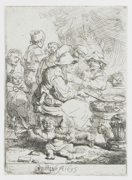 This etching, “The pancake woman,” of around 1635, offers a glimpse into the lives of ordinary people. Though attributed to Rembrandt, its true creator remains unknown, highlighting the often-unacknowledged labor within artistic circles. The scene depicts a woman at her work, surrounded by a crowd that hints at a lively, perhaps chaotic, domestic life. The blurred lines of the etching technique capture a sense of immediacy, drawing us into the heart of this bustling scene. The image resonates with themes of labor and domesticity, inviting us to consider the roles and representations of women in 17th-century Dutch society. What does it mean to witness a moment of daily life immortalized through art? How does this anonymous artwork challenge or reinforce our understanding of the period?