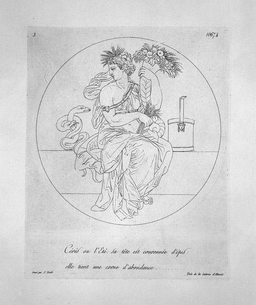 Curator: We're looking at an engraving by Giovanni Battista Piranesi titled "Aeolus seated on clouds." Editor: It feels immediately somber, even a little wearying. The figure is so still amidst all that implied atmospheric energy. Curator: Precisely. Piranesi, though working within a neoclassical framework, often infused his works with a certain dramatic tension and even an almost gothic sensibility. Aeolus, the Greek god of the winds, isn’t usually depicted this way, looking so dejected. The figure seems weighted down by the burden of command, perhaps, or by the inevitability of weather patterns that would affect human life. I wonder about the choice to emphasize the human features over the divine... Editor: Look closely. You can see faint renderings of shoes with small wings under the robes. A winged messenger. It’s a very interesting interpretation—this interplay between a burdened figure and the swift messengers carrying out his decrees, symbolizing both the weight and the execution of power. Is this intended to subtly show that power always rests somewhere even as the wheels of industry spin wildly ahead of it? Curator: Interesting! Especially given that Piranesi was deeply invested in the visual culture of power. He created prints that shaped perceptions of Rome's ancient grandeur, works commissioned and disseminated to enhance the status of institutions and elites. This engraving would have resonated within such socio-political currents of the time. Images held social and cultural currency and often did quite a lot to perpetuate existing social arrangements. Editor: Absolutely. Consider also the classical composition confined within a tight circle; the line work reminds us of something like a Roman coin; this work could be interpreted to serve as some meditation on governance; it makes you think about the power over weather that resides at any seat of governance. Curator: This engraving is fascinating as it really showcases the intersection of mythology, art, and politics that defined much of Piranesi's output. Editor: Yes. And it is important that we understand its cultural importance so we are equipped to reflect on these elements today.