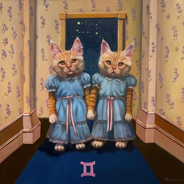 Lucia Heffernan painted ‘Aquarius’ using oils, capturing a cat drinking straight from a milk bottle. The open refrigerator door and a spilled puddle of milk indicate a scene of clandestine indulgence. The image of the cat drinking from the bottle alludes to a pervasive cultural tradition that depicts cats drinking milk which stretches back to ancient fables and children's stories. But Heffernan’s image also subtly challenges the traditional association of women with domesticity, as the cat seemingly bypasses the role of the human caregiver. Painted in the style of classical realism, ‘Aquarius’ uses recognizable conventions to deliver social commentary, reflecting on themes of autonomy and desire. As art historians, we look at these visual codes and their cultural contexts to understand how artists engage with the social issues of their time. Detailed analysis, and a knowledge of social history, can reveal the meanings embedded in this seemingly simple scene.