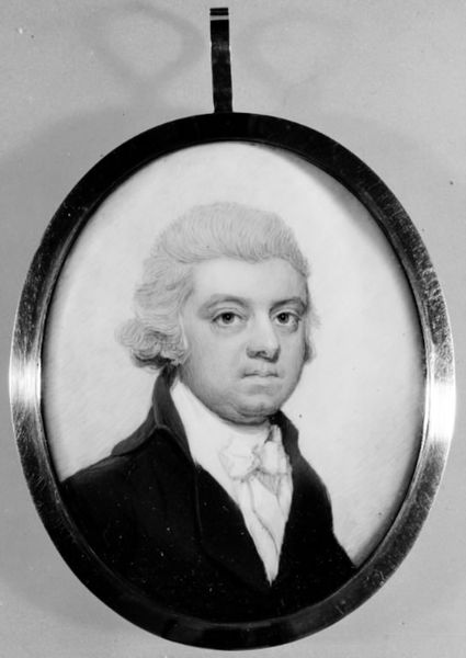 Curator: This delicate piece is a miniature portrait of Stephen Hooper, created by Henry Pelham in 1773. It is currently part of the collection here at The Metropolitan Museum of Art. What strikes you first about it? Editor: It feels so contained. The tight oval composition, the limited color palette… there’s an almost…airless quality about it. Very different from the sweeping dramas often associated with grand portraiture of the time. Curator: Absolutely. The size alone dictates a more intimate engagement. These miniatures were often kept close, worn as jewelry or kept in personal collections. They functioned as potent symbols of social standing, political power and familial bonds, allowing the bearer to maintain and perform their social role even when not physically present. Editor: I'm drawn to the precise rendering of the face, but particularly how the stark white of his powdered wig is placed above the very subtly applied pinks in his cheeks. There’s an incredible tension between the formal rigidity expected of such a portrait, and the individual characteristics that peek through. Curator: Pelham's strategic use of Rococo elements, such as the delicate color palette, are visually striking and contribute to this duality. Yet it also reinforces notions of gentility and refinement, qualities highly valued by the elite circles the subject inhabited. In contrast to that wig that tells us so much about the man’s station. Editor: Speaking of details: notice the fine brushstrokes that build up the texture of his coat and lace cravat. Despite its small scale, there’s such tangible dimensionality. Curator: Indeed, it highlights the skilled labor required and speaks to Pelham’s adept ability as an artist navigating a complex system of patronage. Displaying his talent while communicating and bolstering his subject’s public persona. Editor: I do wonder, when viewing this today if its message and context might risk overshadowing a recognition of the work itself and Pelham’s talent? Curator: Perhaps, but seeing art as tied to the era it’s produced gives added depth to the viewing experience. Editor: It makes a painting such as this much more multi-faceted for contemporary audiences.