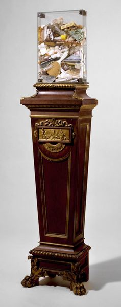 Curator: This is a tall clock, created by Henry Hill sometime between 1730 and 1750. It's an extraordinary piece of Baroque decorative art, carved from wood. Editor: It has this intense feeling of… looming! I immediately think of the rigid social structures of the 18th century. Something about its height and stern face makes me uneasy. Curator: Uneasy? Well, think of it as more than just a time-telling device. It was a status symbol! Placed prominently in a wealthy home to showcase precision and order, very performative. Editor: Exactly! All about controlling time, labor, and bodies. And the fact that it’s so phallic, like a looming patriarchal figure presiding over the domestic space… it feels deliberate. The carving becomes another layer of that controlled presentation. Curator: Ha! I suppose one could see it that way. I always just saw the craftsmanship. Think about the carving, the patience! It’s exquisite detail is more about pride of work and artistry. A way to bring beauty into the everyday. Editor: Perhaps. But can we separate beauty from the power structures it served? This wasn’t just about individual artistry; it was about reinforcing hierarchies. Even its physical placement in the house… who got to be near it? Whose time was being dictated? Curator: Okay, okay, point taken! But, still, can't we appreciate its artistry independent of all that? It's like saying we can't enjoy a landscape painting because it once belonged to a colonizer! I mean...where does it stop? Editor: I think it's about holding both truths: acknowledging the skill while also understanding the social context. Not necessarily negating the aesthetic value but enriching our understanding of its impact. Curator: Right, like… remembering who made it possible, I suppose. Otherwise, it’s just… nice wood. Well, thanks for making me feel bad about admiring old clocks! Editor: And thank you for reminding me that beauty can be a powerful and complicated thing. This object is less silent now, with a broader narrative for those who listen.