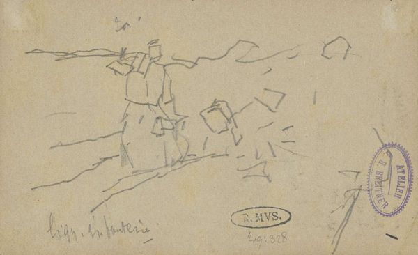 Curator: Alexander Shilling's "Zeilschip aan een kade," likely created between 1888 and 1889, captures a sailing ship at dock. What stands out to you? Editor: The immediate sense is one of transience, or even precarity. The rapid, almost frantic lines of the sketch lend it a restless quality. Curator: Indeed, it’s sketched using both pencil and ink, demonstrating a swift capture of the scene. Consider the late 19th century; increased industrialization and shifting socio-economic landscapes deeply impacted maritime communities and how they viewed their role in larger cultural imaginaries. Was Shilling capturing the change? Editor: That is interesting. The sketchbook feel also creates intimacy. The rough quality also suggests the lived experiences of working-class maritime communities and perhaps resists an overly romantic portrayal of ship life in general. Who might be present in this very immediate perspective? Curator: That's a very astute observation. While it’s challenging to determine social position in the sketch itself, examining Shilling's background allows some room for speculation. What institutions were available for artists such as him? How was life experienced at this specific place and time? What do we make of the absence of explicit detail, encouraging our active imagination to fill it? Editor: Perhaps Shilling uses the immediacy of the pen and ink to address the fleeting nature of global industrial advances as well. There is something very "in process" about it. The question then becomes not so much 'what' is it?' but more 'what does it mean, or risk?' in its contemporary, increasingly mechanized world? Curator: Precisely. This sketch encourages reflection on how society shapes art and artists and their response to societal forces. The piece makes room to view the relationship between commerce, labor, and environmental shifts underway at the time, making it intensely relevant in current socio-political and ecological discussions. Editor: For me, reflecting on how we "capture" change, in sketchbooks and beyond, will stay with me after this discussion. Curator: Absolutely. "Zeilschip aan een kade" leaves me pondering how personal observations are shaped by grand societal forces and vice versa, making us reconsider the very act of observation itself.