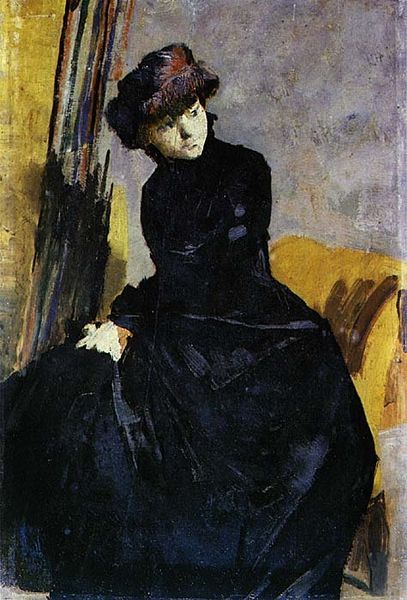 Albert Edelfelt painted this portrait of a seated woman, enshrouded in black, during an era of profound social change. The somber color, a motif often associated with mourning, here could signify more than personal grief. Consider how the ‘black veil’ has, over centuries, been worn not just as an expression of loss, but as a symbol of mystery, power, and even rebellion against societal norms. Think of the veiled figures in Renaissance paintings, or the dark-clad women of the Romantic era, each using the color to evoke complex emotions. The woman’s composed demeanor, framed by the darkness, suggests a conscious choice to engage with these complex undertones. Might this be Edelfelt's way of capturing a moment of transition, where old meanings are re-imagined and new identities emerge from the shadows of the past? The emotional charge is subtle but powerful. It engages us on a subconscious level.