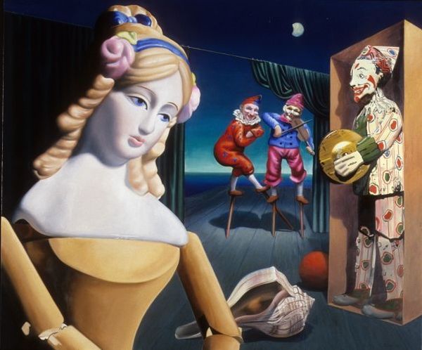 Charles Bell made this painting, The Judgement of Paris, and wow, what a story he’s telling! You've got all these different elements mashed together in one seriously playful composition. The surfaces are super smooth, almost like he's airbrushing, and it makes the whole thing feel both real and unreal at the same time. I mean, look at the way the light hits those dolls – it’s so precise, yet the subject matter is so absurd. And the colours? They're so saturated, like the whole thing's been dipped in candy. I’m drawn to the two dogs sitting at the front of the painting. They seem totally unfazed by all the drama unfolding around them, like they’re the only ones who know this is all just a big game. Bell is playing with our ideas of beauty, culture and art history, and the painting reminds me of how much I love Lisa Yuskavage's work, where she’s twisting and turning our expectations of form and subject matter. For Bell, as for Yuskavage, it's all about pushing the boundaries and finding new ways to see the world.