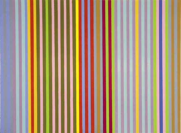 Editor: So, this is John Ferren's "Red Rose," created in 1966 using acrylic paint. It's very striking! The dominant red with the geometric shapes really grabs your attention. How would you interpret this piece? Curator: Well, from a historical perspective, it's important to understand that "Red Rose" emerges from the Hard-edge painting movement. We see the visual vocabulary, the precise geometric forms, the flat planes of color, and the rejection of gestural abstraction. How does the title, "Red Rose", connect or disconnect from the visuals for you? Editor: It's a bit confusing. The name evokes something natural and soft, but the painting is very structured and geometric. The organic feel from a rose isn't really there. Curator: Exactly! This dissonance might be intentional. Artists working in hard-edge often aimed to create purely optical experiences, divorced from narrative or symbolic content. Is Ferren perhaps commenting on the artificiality of imagery or challenging the viewer to reconsider the connection between name and representation? It prompts one to question the artwork's accessibility and, in a broader sense, the viewer's own place within an institution presenting fine art. Editor: That's interesting. So the hard-edge movement wasn't just about aesthetics, but also about questioning the role of art and how it's perceived? Curator: Precisely. These artists actively considered how their work would be viewed within a gallery setting, aware that such spaces influence perception. "Red Rose," therefore, becomes part of a larger conversation about the presentation and consumption of art. Editor: I never thought of it that way. Seeing how the art world and gallery context are tied to an artist's process definitely brings a new appreciation for abstract expressionism, hard-edge and geometric pieces in general! Curator: Indeed. Understanding the historical context adds a rich dimension to viewing the art. It opens pathways for richer understanding.