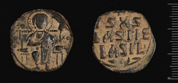 Editor: This is a Follis of Romanos I from Constantinople. The artist is Constantine VII. It's a small coin, and its worn surface makes me think about the people who handled it. What can you tell me about this piece? Curator: This coin represents more than just currency; it's a statement of power and legitimacy during a tumultuous period. Consider the iconography – who is represented, and what does their depiction communicate about Byzantine imperial ideology? How does this object participate in broader narratives about power, religion, and identity in the 10th century? Editor: So, the imagery served a purpose beyond simple portraiture? Curator: Absolutely. Coins were a primary means of disseminating imperial imagery and messages. Examining the symbols and inscriptions reveals the values and priorities the rulers wanted to project. What do you think about the interplay between the religious symbols, like the cross, and the ruler's image? Editor: I see how it all comes together, showing that they were chosen by God. Thanks, this helped me understand it better! Curator: Indeed, and by understanding this coin, we are also reflecting on who gets to write history, and who gets erased.