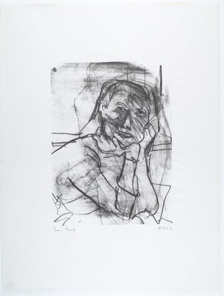 Curator: Here we have Frank Auerbach’s etching entitled "Michael," currently residing in the Tate Collections. Editor: It's like a whirlwind of lines trying to coalesce into a face; so much raw energy embedded in the etching process. Curator: Auerbach's work often reflects post-war anxieties and a search for stability in a rapidly changing world, particularly within the London art scene. Editor: The very act of repeatedly etching and reworking the plate reflects a process of layering and excavating, a material struggle to capture the subject's essence. Curator: His portraits often depict individuals within his close circle. I wonder, what might this "Michael" represent in Auerbach’s personal history? Editor: Perhaps "Michael" embodies the fractured nature of identity, the constant flux between formation and disintegration that Auerbach's technique embodies so vividly. Curator: Yes, it's as if the medium itself mirrors the instability of memory and perception. Editor: Seeing the labor, I now appreciate how much these lines, etched and printed, capture a very human fragility. Curator: Indeed, a poignant exploration of the human condition.