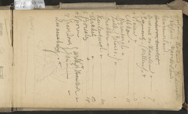 These are Antoon Derkinderen's notes on the book design for 'Gijsbrecht van Aemstel' by Joost van den Vondel, which provide a glimpse into the artistic process of translating literature into visual form. Derkinderen, working in the late 19th and early 20th centuries, was deeply engaged with the cultural and intellectual movements of his time. His position as an artist in a rapidly changing society informed his approach to art and design. These notes reflect Derkinderen's engagement with the play's themes, characters, and settings, and invite us to consider how he sought to visually interpret Vondel's words. The notes reflect Derkinderen’s personal interpretation of the play as well as the collaborative nature of artistic production. We might also reflect on the power dynamics inherent in adaptation and interpretation, and the artist's role in shaping our understanding of cultural narratives.