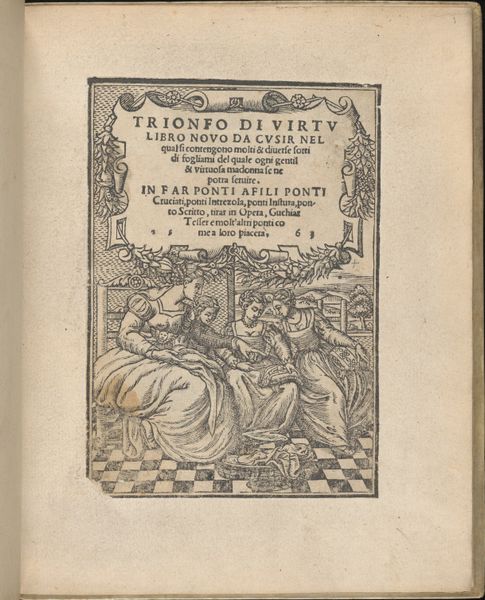This is the title page of "Il Monte. Opera Nova di Recami," printed in Venice, sometime between 1500 and 1650, by Giovanni Antonio Bindoni. During this period, Venice was a center of both commerce and culture. The book's title page, adorned with a vignette of an eagle, hints at the complex interplay of gender and class in the early modern period. The text suggests that this book is intended for "le belle, e virtuose Donne" - beautiful and virtuous women - and offers them a guide to needlework, specifying its utility in creating works of "misura, & grandezza". In a society where women's roles were largely confined to the domestic sphere, needlework was not only a practical skill, but a means of expressing creativity and status. Bindoni's publication catered to the desires of women seeking both beauty and utility. This page gives us an opportunity to consider the ways in which art and craft intersected with gendered expectations and social hierarchies in early modern Italy.