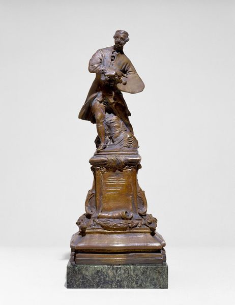 This sixteenth-century-style oil lamp in a stand was crafted by Leone Leoni. The lamp presents itself as a visual game of contrasts, with the human figure at the top and the lamp's base adorned with eagles and mythological creatures. Leoni has sculpted the piece by combining classical forms with a dynamic and expressive style. The upper part is composed of a lone male figure set against swirling drapery, while the lamp's support and base feature figures in a supporting role. The artist plays with the tension between form and function, ornament and utility. The lamp is an object of daily use, but it is also a complex work of art that invites philosophical contemplation. Consider how Leoni created a dialogue between classical and Renaissance ideals, creating a new visual language.