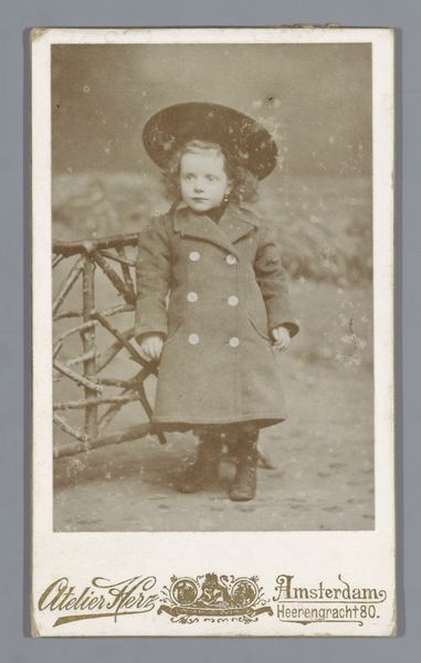 Brainich & Leusink, based in Arnhem, Netherlands, made this photographic print called 'Portret van Darwine d'Abo, vier jaar oud', or Portrait of Darwine d'Abo, Four Years Old. Photographic prints like this one were a major form of vernacular photography in the late 19th century. This image creates meaning through its visual codes, cultural references, and historical associations. The child is formally dressed in a tailored coat and matching hat. Darwine d'Abo’s clothing suggests a middle-class or upper-class background, and we could do more research into the d'Abo family and their connection to Arnhem and the Netherlands in the 19th century. Family portraits were of course widespread, but formal portraits were more expensive, and generally commissioned by families who wished to demonstrate wealth. The social function of art, like this portrait, is contingent on social and institutional contexts.
