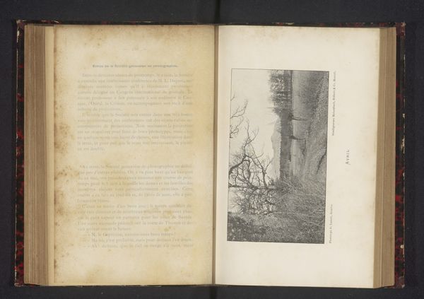 Editor: Here we have a plate from an album dating to before 1899 titled "Winters landschap met een huis en een waterpartij," so, "Winter landscape with a house and a body of water". It looks like a photogravure, capturing a solitary winter scene. I’m immediately struck by the composition - the low horizon line, the expansiveness of the sky, and how bleak the landscape feels. How would you interpret this image within its historical context? Curator: This piece, especially presented as part of a larger album, speaks volumes about the commercialization of art and imagery in the late 19th century. These albums were often curated to showcase photographic prowess or to cater to a specific audience’s taste for landscape or genre scenes. Consider its potential function: Was it aimed at tourists wanting a memento, or perhaps aspiring artists seeking visual inspiration? Editor: That's a perspective I hadn't considered. So, it’s less about the artist's personal expression and more about fulfilling a market demand? Curator: Precisely. And the choice of a winter landscape also aligns with popular Romantic ideals concerning nature's sublime power and the human relationship with it, even within constructed boundaries like these albums. Do you think the photogravure technique itself influenced the perception or reception of such images? Editor: Definitely! The tonal range achievable through photogravure lends a certain gravitas, almost mimicking the aesthetic of charcoal drawings. This may elevate a simple scene into something considered 'artistic', fit for display and collection. The print gives it validity. Curator: Exactly. It invites us to question the boundaries of "art" and "documentation" within the booming visual culture of the time. Thinking about it now, I wonder how people engaged with photo albums then. Editor: It does make you wonder if it served a function similar to social media feeds now. It was enlightening to explore how market forces shaped art and photography, which gave me an insight I had not considered before. Thank you.