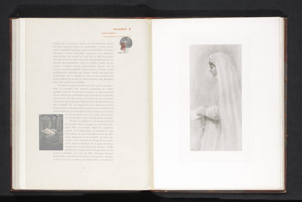 This is "Vioolspelend meisje" by Harold Baker, an early 20th-century photograph printed in a book. The image, rendered in monochrome, captures a young girl playing the violin. Baker masterfully uses light to define form and create a sense of depth, focusing on the texture of the girl’s dress and hair, setting her against a backdrop of what appears to be heavy curtains. The composition is carefully balanced, the girl positioned centrally in the frame. Baker’s use of perspective draws the eye not only to the girl but also to the scene's narrative potential: the photograph's formal elements contribute to its meaning. The photograph also functions as a sign, embedded in a historical and cultural context. The young girl and her violin evoke ideas about childhood, education, and social class. Baker's photograph serves as a cultural artifact, inviting us to consider the values and aesthetics of early 20th-century England and how photographic techniques are used to capture and convey cultural ideals.
