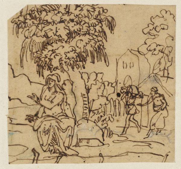 Curator: The frantic energy captured in this pen and ink drawing titled, "The Martyrdom of Saint Stephen" by Pietro da Cortona is initially jarring. The paper supports an event exploding from the very fibers of the artwork. Editor: Yes, initially the dynamic and open composition does feel unresolved; the eye struggles to find a focal point amidst the seeming chaos. What draws your attention first? Curator: Undoubtedly, it's the figure of Saint Stephen at the bottom, whose body lies prostrate, drawing parallels to early Christian martyrs. Consider, however, the cultural implications. He represents defiance against established power, a resonant theme then, as it remains today in liberation struggles. Editor: I agree his position is central, yet note how the rapid, swirling lines create a sense of movement. Cortona masterfully uses these to convey the stoning, not just as a physical act, but as a manifestation of intense fervor. See how it almost abstracts into the celestial above... Curator: I cannot help but question whether ‘fervor’ and ‘martyrdom’ can obscure abuses of power. The piece risks celebrating a specific brand of religiosity whilst eliding the cost paid by Stephen. It reminds us that historical depictions can perpetuate damaging ideologies. Editor: Perhaps, yet also observe Cortona’s deliberate deployment of Baroque style— the drama, the diagonals, the open composition meant to immerse the viewer in a spiritually charged space. Even his pen and ink sketch brings monumentality. He clearly aims for emotional impact. Curator: While undeniably effective stylistically, must also unpack that very impact. Does it inspire reflection, or indoctrination? Is it an evocation of truth or propaganda masked by beauty? As viewers, we have an obligation to remember those oppressed in the name of religion today, and how ‘history’ is shaped. Editor: I see what you mean. I am reminded that close readings push our engagement beyond formal and material properties towards cultural relevancy, and sometimes, difficult reckonings. Curator: Indeed, perhaps confronting beauty with truth creates avenues toward critical inquiry.
