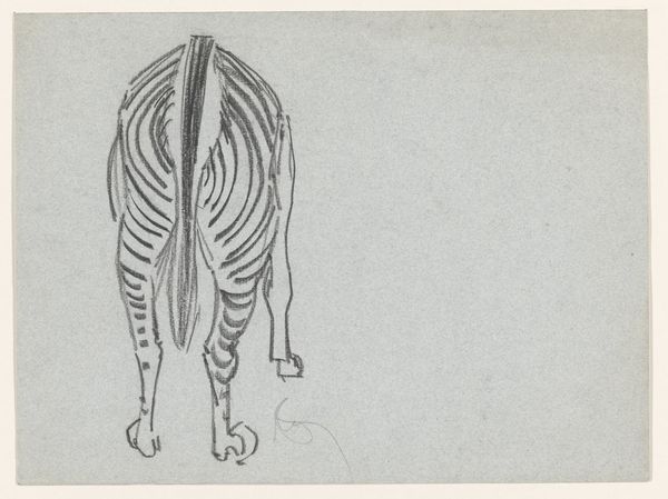 Editor: This drawing, titled "Omtrek en skelet van een paard," or "Outline and skeleton of a horse," by Leo Gestel, dates from 1926 to 1941 and is made with ink on paper. I’m really struck by the sketch’s raw quality, especially given that it's drawn on what looks like a page from a calendar. How would you interpret Gestel's use of this unusual surface? Curator: I find it fascinating how Gestel repurposes a common, almost disposable, item like this calendar page as the ground for his artistic exploration. The pre-existing lines and dates impose a grid, a framework, on the animal's form. We have to consider that paper itself was a commodity. This choice elevates the everyday, highlighting the means of production not only of art, but of everyday life and challenging the traditional art spaces. What kind of labor and consumption cycle does this specific type of paper index? Editor: So, instead of seeing it as a limitation, it becomes a commentary on the material conditions of art making at that time? Curator: Precisely. Notice the quick, almost frantic, linework used to depict both the exterior and the skeletal structure. What do you make of this merging of skin and bones? It's not simply about anatomical study, but perhaps Gestel is examining the labor of the animal and how it impacts its own form, and also the context around how materials shape our perception of the world. Editor: I didn't think about the labor aspect before, but it makes sense considering the date printed on the page. Perhaps Gestel found this to be a readily accessible and inexpensive material, indicative of broader socio-economic forces. It also adds an element of fragility, of temporality to the piece, doesn't it? Curator: Exactly! That fragility enhances our understanding of Gestel’s choices of materials within the art piece itself. What at first seems like an arbitrary choice, becomes a really powerful gesture once you realize what exactly it implicates within society! Editor: This conversation has definitely changed my perception of the piece. The deliberate use of humble materials suddenly makes the artwork even more compelling. Curator: Agreed. Examining the materiality and its social implications adds layers of depth to Gestel's drawing.