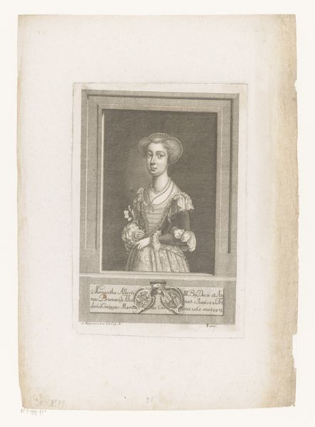 Pierre Chenu made this portrait of Elizabeth I, Queen of England, in the 18th century using engraving. The choice of engraving is significant. It's a printmaking technique that allows for the reproduction of images, making them more accessible than unique painted portraits. This speaks to a shift in the consumption of images, reflecting the rise of a broader public interested in art and history. The fine lines and delicate details achieved through engraving lend the portrait a sense of refinement and precision. Engraving, while demanding skill, involves a degree of mechanization, hinting at the early stages of industrialization. Consider the labor involved: the artist meticulously incising lines into a metal plate, then the printing process itself. This contrasts sharply with the opulence of Elizabeth's attire, a potent symbol of wealth and power acquired through trade and colonial expansion. Ultimately, understanding this print requires acknowledging the complex interplay of materials, processes, and social context, bridging the gap between fine art and the broader world of making.