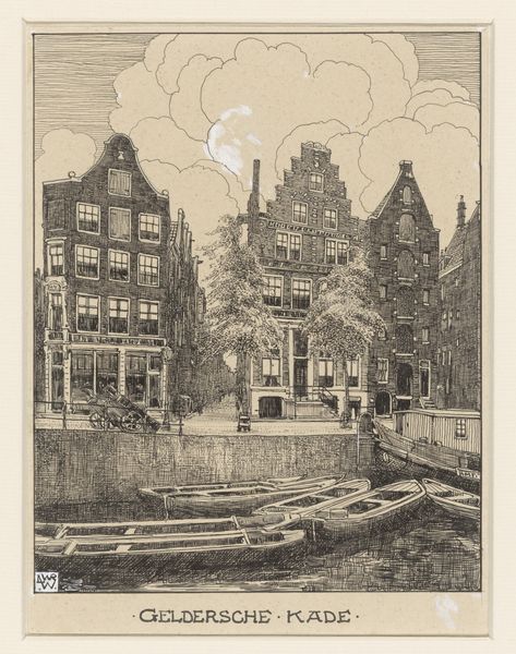 Willem Wenckebach made this print of the Oude Zijds Kolk in Amsterdam using etching. The image shows a canal scene, typical of Amsterdam, with narrow houses lining the waterway, and the tower of the Oude Kerk rising in the distance. In the late 19th and early 20th centuries, artists like Wenckebach often turned to urban landscapes. They sought to capture the unique character of cities undergoing rapid change. This interest coincided with the rise of urbanism as a field of study, examining the social and economic forces shaping city life. Prints like this one were often made for a growing middle class, eager to own affordable artworks depicting their surroundings. To understand the full story of this image, historians might consult city archives, period guidebooks, and exhibition records. These sources reveal the cultural values and institutional frameworks that influenced both the production and reception of art in Amsterdam at this time. Art, in this context, becomes a window into the broader social and cultural history of the city.