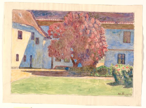 Curator: Good morning. I’d like to introduce Andreas Bernhard Söhngen’s "Church in Bad Orb," a compelling drawing dating to February 1912. It’s a striking piece currently housed here at the Städel Museum. What are your first thoughts? Editor: Immediately, I’m struck by the somber, almost spectral mood. It feels like a memory, softened by time and light. The palette is muted, the composition grounded, the presence of nature offers that grounding. It is if nature and time play a leading part in life. Curator: It’s interesting you pick up on that. Söhngen created this artwork en plein air. At the time, there was growing artistic interest in the landscape and what a modern city might look like. But in painting places, even in the impressionist style, Söhngen was painting time, place, society in motion, just by his composition. Editor: And there’s that figure, standing in the shadow of the church. It’s like a silent observer, adding to the atmosphere of contemplation and introspection. He looks like waiting for the present. Is the door about to open for them, or has the door of time brought them here? Curator: Perhaps. We should remember, however, that these drawings and painting like "Church in Bad Orb" came in a turbulent historical period in Europe, rife with social change and anxiety that rippled throughout its politics, class structures, and national boundaries. Art has to be understood through the lense of the viewer, even 100 years later. Editor: Absolutely. And this drawing invites exactly that, doesn’t it? I mean, even though I knew nothing about this context of his drawings, Söhngen gives you the sense of walking in to the drawing's time frame. The fact that it’s a gouache painting almost amplifies its power to welcome imagination, emotion, empathy and humaneness. Curator: It’s fascinating how we can perceive art in ways unintended, maybe, by its creator. His works show you about society at the turn of a century. Editor: Indeed. It also holds an emotional depth for what the place once was for its community and what could be. So I invite you, next time when you are strolling a historic place like Bad Orb to remember to stop to watch at the door: the new doors we have, how do they reflect old days, our imagination and hope? Curator: Well said. A final thought that highlights both art as it comes to shape and reflects who we are today!