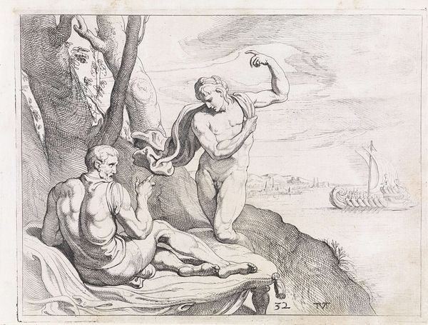 Jan Lievens made this drawing, River God with an Eagle, using pen and brown ink on paper. The earthy sepia tone of the ink has a quality of immediacy, as though this mythological scene has been captured in a fleeting moment. Look closely and you'll see the artist's hand in the repeated strokes, creating a cross-hatching effect. The controlled, precise lines build up the figures' forms, giving them depth. The flowing lines mimic the fluidity of water and the texture of the eagle's feathers. The technique speaks of tradition, reminiscent of the detailed drawings and prints that were circulating in Europe at this time. Lievens was working during a period of significant social change and artistic innovation. The rise of print culture meant the circulation of images, and the development of personal style was critical for an artist to stand out. The labor and time invested in creating such an image, as well as the skill required, would have been valued. When we appreciate the skill and process behind this drawing, we start to move beyond the divide between fine art and craft. The materials, techniques, and context give the artwork its full meaning.