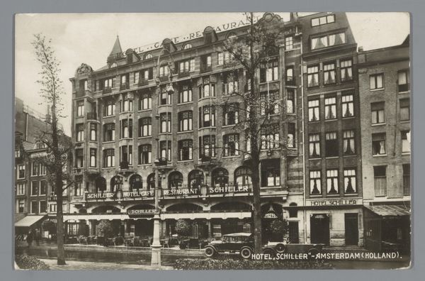 This photo of the Hotel "Schiller" in Amsterdam, by S. Sealtiel, presents a moment frozen in shades of gray, emphasizing form and texture. It feels like stepping into a memory. The surface of the image seems smooth. The tones aren't just about light and dark; they create a mood, a sense of depth that pulls you into the scene. The way the details soften with distance reminds me of how memories fade. Look at the bold lettering above the entrance – "Hotel Cafe Restaurant Schiller" – it anchors the image, giving it a clear focal point. It reminds me of some of Atget's photographs of Paris. There's a similar fascination with capturing the everyday, with finding beauty in the urban landscape. I like how this image feels both specific and universal, a document of a particular place and time that also speaks to something larger about history.