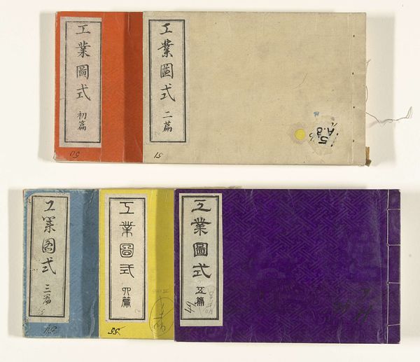 Curator: These are "Sketches by Hokusai - part 2", dating back to 1878. The artist, Katsushika Hokusai, is well-regarded for his woodblock prints in the ukiyo-e style, and this piece resides here at the Rijksmuseum. Editor: It's strikingly minimalist. The muted yellow cover, the vertical text... almost austere, until you look closely at the woven paper texture. Curator: Indeed. The context is vital. Hokusai's work had a huge impact, shaping Western perceptions of Japanese aesthetics and influencing movements like Japonism. He represents a bridge between cultures and eras. Editor: A bridge built with carefully crafted paper and ink. Woodblock printing is itself an intensely laborious process. Considering how accessible these prints eventually became, it's easy to forget the sheer skill and material investment involved. Curator: His impact on the socio-political role of art is enormous too. Woodblock prints allowed for relatively inexpensive art ownership and widespread distribution, challenging the idea of art as exclusive to the wealthy elite. This accessibility contributed to art becoming more integrated into the daily lives of the public. Editor: You are right; consider the wood and the dye used in the making; everything sourced locally, contributing to regional economies... these works are testaments to materiality but also the societal context of consumption and distribution. The quality, from the choice of paper to the precision of the carving, tells you how valued the craft was within its society. Curator: Hokusai’s style, while refined, was not necessarily geared to an upper-class audience but aimed to broaden taste; there is that political dimension too of shaping popular consciousness through images. Editor: I see those seams holding the covers together, thinking of the hands involved in producing this very book, reflecting labor and distribution, everything feeding back into an artistic process... the materials whisper of trade, of skill, and of societal values. Curator: The museum showing and safeguarding a cultural record. Now I realize this sketch’s role. It continues engaging in shaping an international view of a distinct era. Editor: Absolutely; what’s old will become useful once more. Thanks!