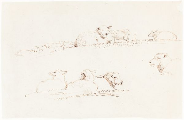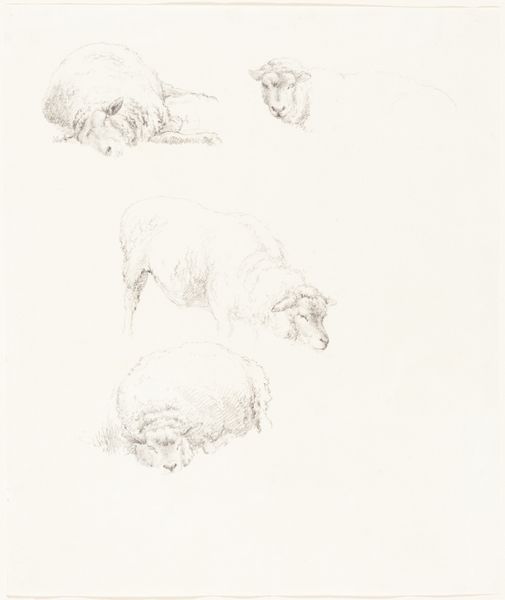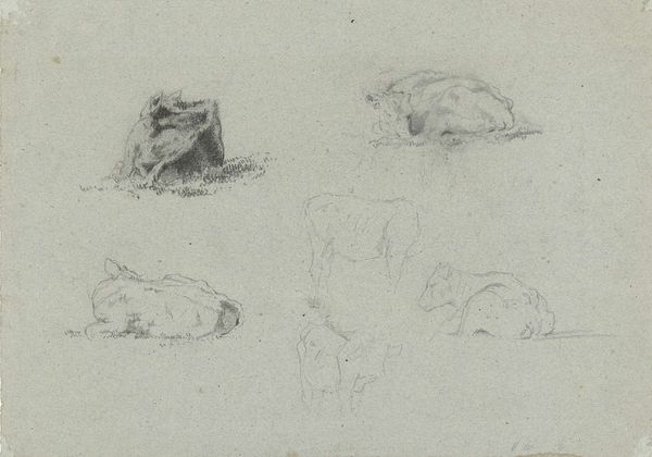Curator: I see a field of bunnies, all rendered with such delicate pencil strokes. It's quite charming. Editor: Indeed. This is "Studies of Rabbits," a pencil drawing by Sir Francis Seymour Haden. He was active during the 19th century. Curator: Given the period, I wonder about the social context. Rabbits often symbolize fertility, but also vulnerability. Is this commentary on societal roles assigned to women? Editor: Perhaps. Or maybe it's simply an animal study, focusing on form and the material presence of the paper and pencil. Curator: Fair enough. Still, the act of sketching itself can be viewed as an embodied performance, reflecting power dynamics... Editor: Well, whichever it is, I appreciate the simplicity and the artist's choice of medium to capture these creatures. Curator: It’s certainly a piece that invites multiple readings, which is always welcome. Editor: Agreed. It leaves us with more to consider than one might expect.