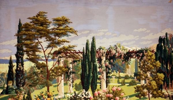 Curator: This is "Keats' Tomb in the Protestant Cemetery, Rome," an oil painting rendered in plein-air style. The artist is Walter Crane, known for his associations with the Arts and Crafts movement. Editor: It's immediately evocative, a rather melancholic but very detailed depiction of the Roman cemetery. The juxtaposition of the ancient pyramid and the delicate foliage is quite striking. Curator: It is interesting how Crane renders a space pregnant with history, intertwining personal tragedy with broader historical narratives. Keats, a major figure of Romanticism, died young, far from home. The Protestant Cemetery in Rome itself is a product of religious and political exclusion—those not Catholic barred from burial within the city proper. Editor: Absolutely. And considering Crane's connection to the Arts and Crafts movement, I find myself drawn to the meticulous execution, the evident care in capturing light on stone and leaf. How does this particular work reflect Crane's broader engagement with materials and craftsmanship? Was painting en plein-air typical of his practice? Curator: He uses the plein-air style as a medium to access history; we can see him grappling with Romantic themes as embodied by Keats while positioning that sensibility within this historic space of marginalization and commemoration. This interest certainly extends from, if not culminates in, his work as an illustrator and designer associated with socialism and aesthetics. Editor: It almost romanticizes the means of death, though! All that green vegetation softens a story filled with religious exclusion and fatal illness, don’t you think? Curator: To soften? Or, to naturalize? Crane may highlight that the romanticized means of death and historical marginalization you noted, like the land we now walk, are filled with the traces of past politics—literally embedded in the environment. This highlights that no view or history is a pure construction—as its roots stem from somewhere that intersects, materially, with political exclusions. Editor: Hmm, fair enough. It’s not just a simple, sentimental scene but an active space of historical consciousness. Curator: Exactly. Crane, in this snapshot, gives us a view into a webbed network of materiality and processes—each influencing and intermingling with one another. Editor: I will definitely carry that expanded insight of “naturalization” into my next historical consideration. Curator: And, hopefully, I’ll also recall, and consider, not only who controls material access but who shapes our perception.