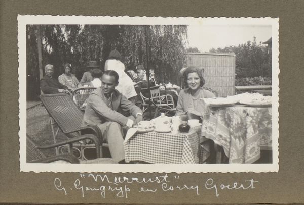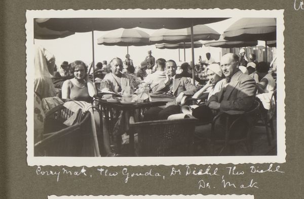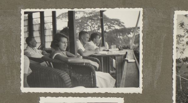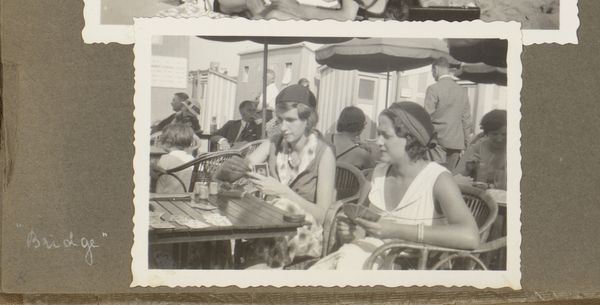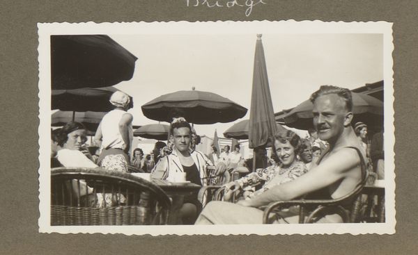 This photograph, Bridgend gezelschap op een terras in Scheveningen, made in 1932 by an anonymous artist, captures a social scene with a lovely, soft focus. It's really all about the grays, which gives it a timeless feel. The texture in this piece is so interesting. You can almost feel the graininess of the photograph paper, it invites you in. Look at the faces around the bridge table, the way they're lit and shaded, and the umbrellas creating pools of darkness. See how the artist uses light to pull our eye into the depth of the image? It's so subtle, yet so effective. The photograph is like an old friend, revealing more with each viewing. It reminds me a little of the work of Lisette Model, who also loved to capture the grit and glamour of everyday life. Like Model, this anonymous photographer embraces the beautiful ambiguity of human experience.