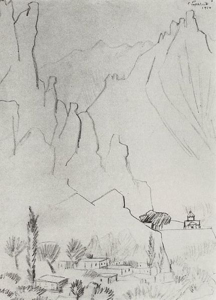 Editor: We're looking at "A dry tree by the road," a drawing done in graphite and charcoal by Isaac Levitan around 1895. It’s a bleak, monochromatic landscape. What initially strikes me is this solitary, gnarled tree, towering over everything else. What do you see in this piece? Curator: I see a melancholic symphony played out in shades of grey. Levitan wasn't just drawing a tree, he was capturing a mood, an echo of human fragility. The realism grounds it, but those expressive, almost frantic lines whisper of something deeper. It's like looking at a charcoal-stained soul, isn't it? I wonder, does the starkness of the composition remind you of anything else? Editor: It’s interesting you say that! The starkness definitely draws me in; however, it's more dramatic to me. So you think the “melancholy” stems from Levitan himself? Curator: Precisely! Remember, Levitan’s own life was marked by a certain…let’s call it “dramatic flair.” Illness, unrequited love…he poured all of that into his landscapes. The starkness isn’t just a reflection of the scene, it's a reflection of his emotional landscape. Consider the way he contrasts that lone tree, stripped bare, against the suggestion of life teeming behind it in the background. Don't you feel that tension, that silent dialogue between life and something else? Editor: Absolutely, that contrast is potent. It reframes my understanding to think of Levitan's personal narrative woven into the image. I think now when I view other similar artwork, it'll give me a unique new depth of field. Curator: And that, my dear Editor, is the magic of art. It's never just what's on the surface, but the whispered secrets it carries within. Thank you for illuminating this.